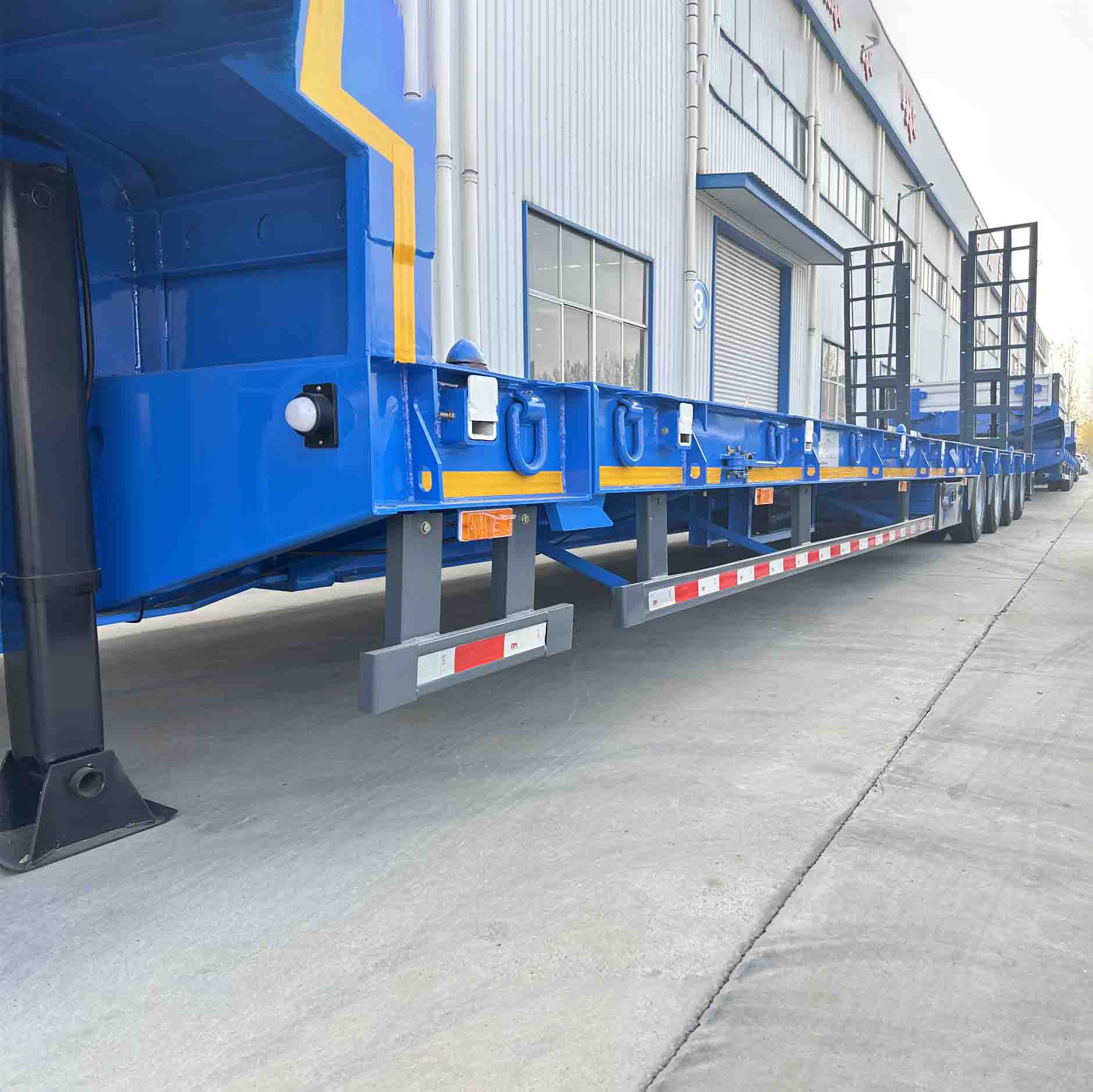 تفصیلات کے لحاظ سے ، ڈیرن اسپیشل فور ایکسل کم فلیٹ بیڈ سیمی ٹریلر اینٹی سنکنرن کے علاج کو اپناتا ہے ، جس سے گاڑی پر روسی موسم سرما کے سڑک کے نمک کے کٹاؤ کو مؤثر طریقے سے مزاحمت کیا جاتا ہے اور اس کی خدمت کی زندگی کو طول دیا جاتا ہے۔ فلیٹ بیڈ کا کنارے سامان کو ٹرانسپورٹ کے عمل میں سامان پھسلنے یا نقصان پہنچنے سے روکنے کے لئے ایک پربلت گارڈریل سے لیس ہے۔ ایک ہی وقت میں ، ٹریلر بھی آسان ہکس اور ٹائی ڈاؤن پوائنٹس سے لیس ہے ، جو صارفین کے لئے سامان کو فوری طور پر ٹھیک کرنے اور بوجھ کی کارکردگی کو بہتر بنانے کے لئے آسان ہے۔